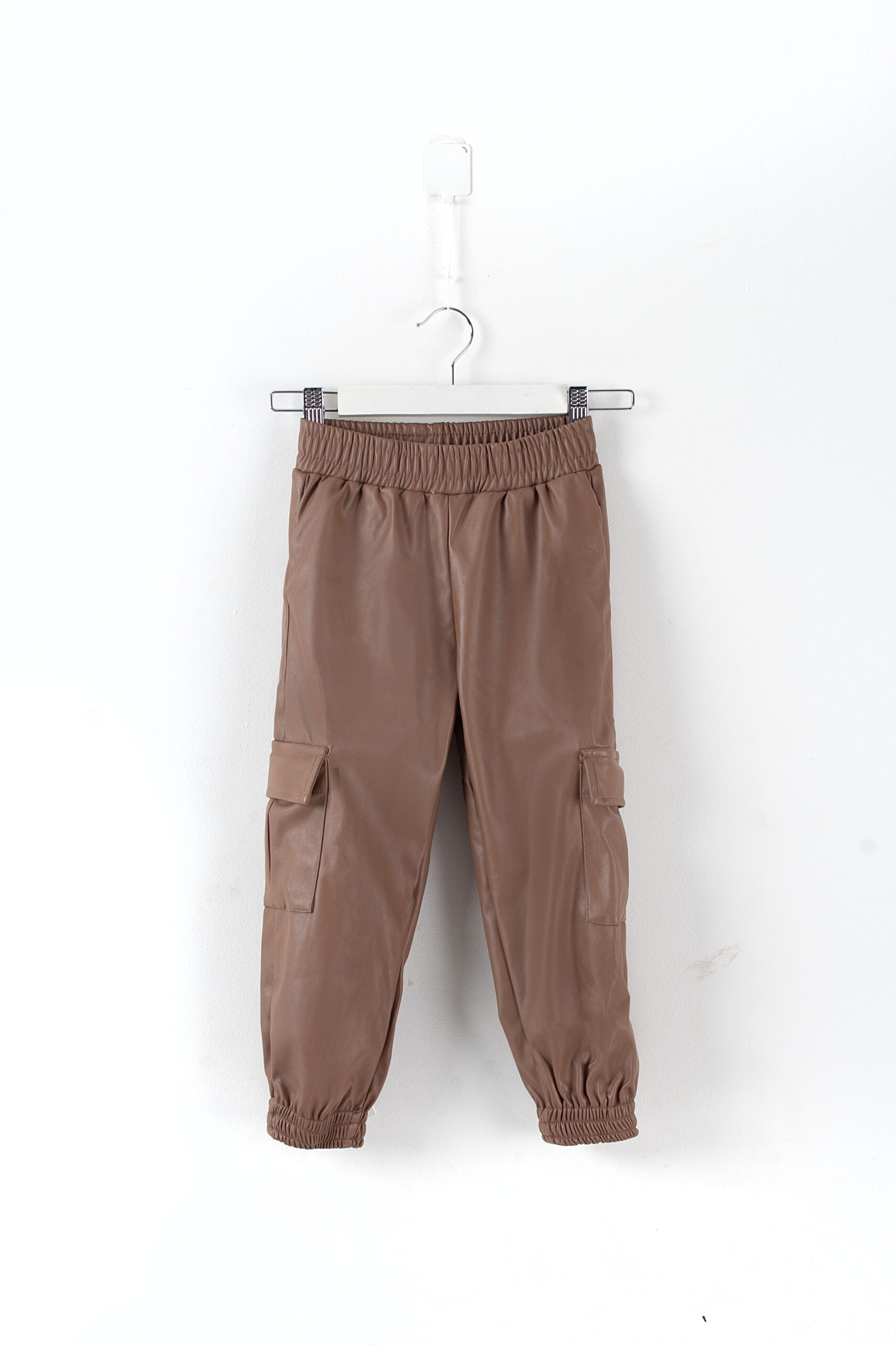 بنطال جلدي بني فاتح ناعم