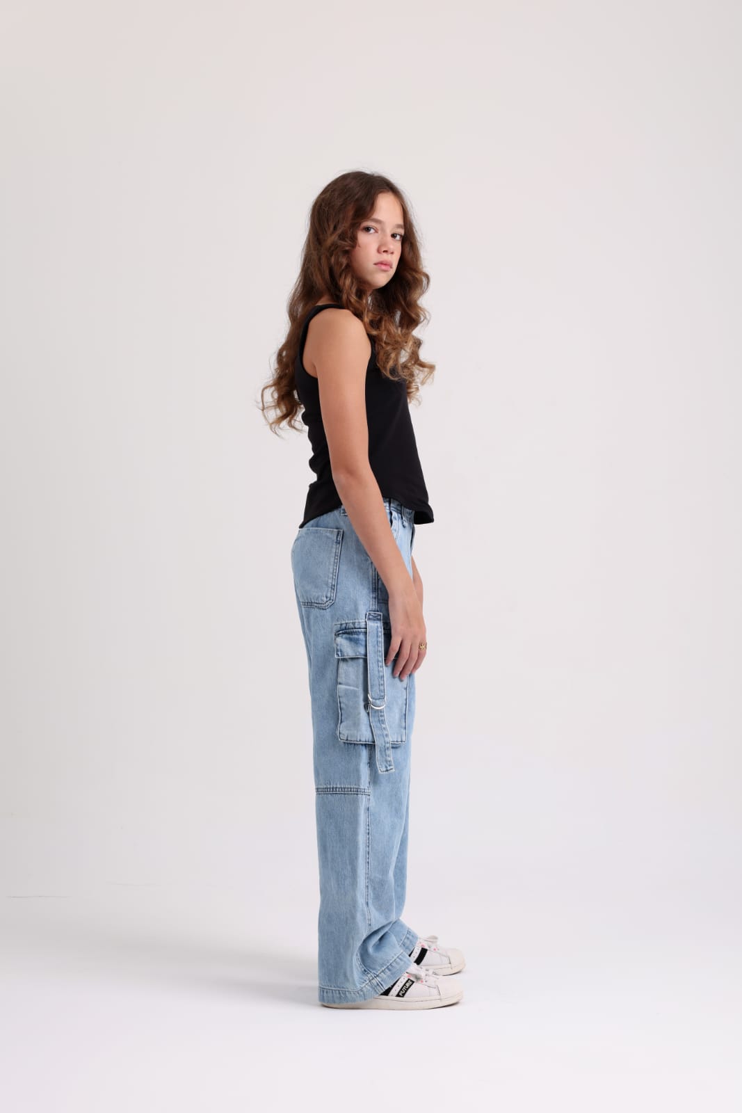 The fresh light wash color makes these pants versatile and easy to style—perfect with casual T-shirts, sporty tops, or cozy hoodies. Balancing durability with a modern look, these pants are a timeless staple that bring together effortless style and thoughtful craftsmanship, ready to accompany her on school days, weekend outings, and everything in between.